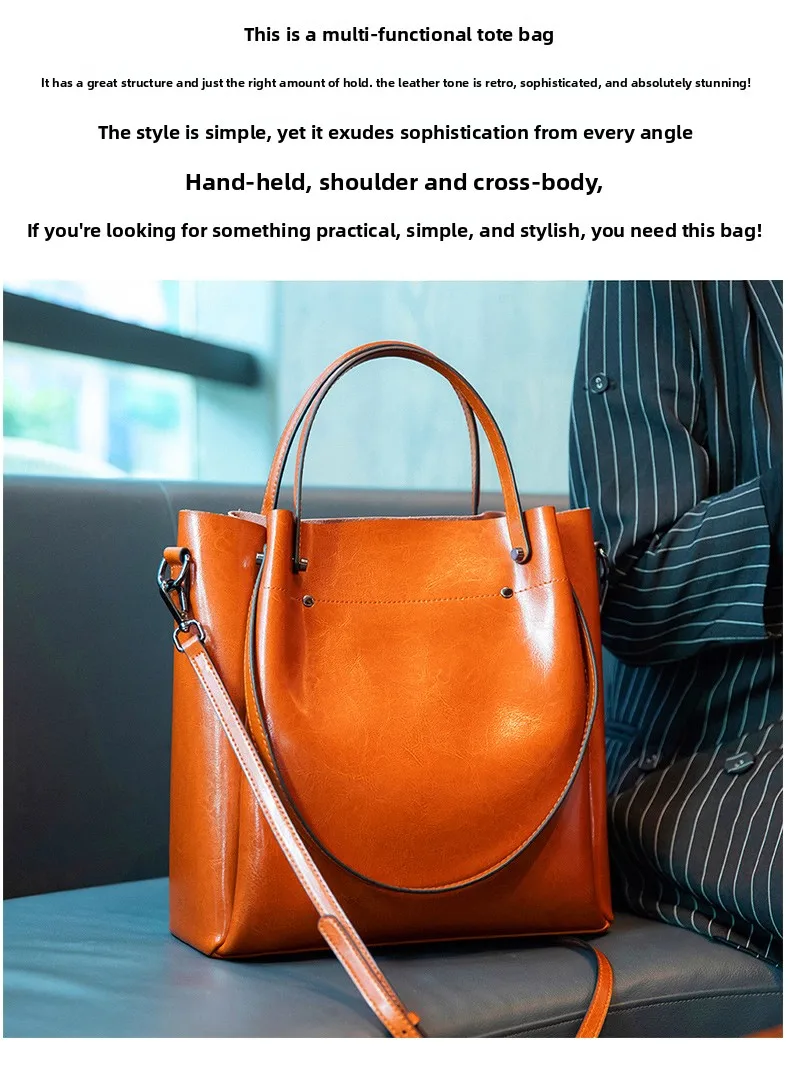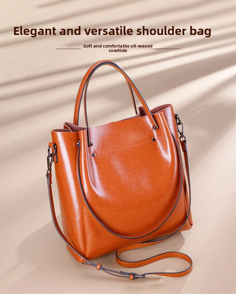 2026 Retro Genuine Leather Women’s Handbag, Popular Elegant High-Grade Calfskin Tote Bag
