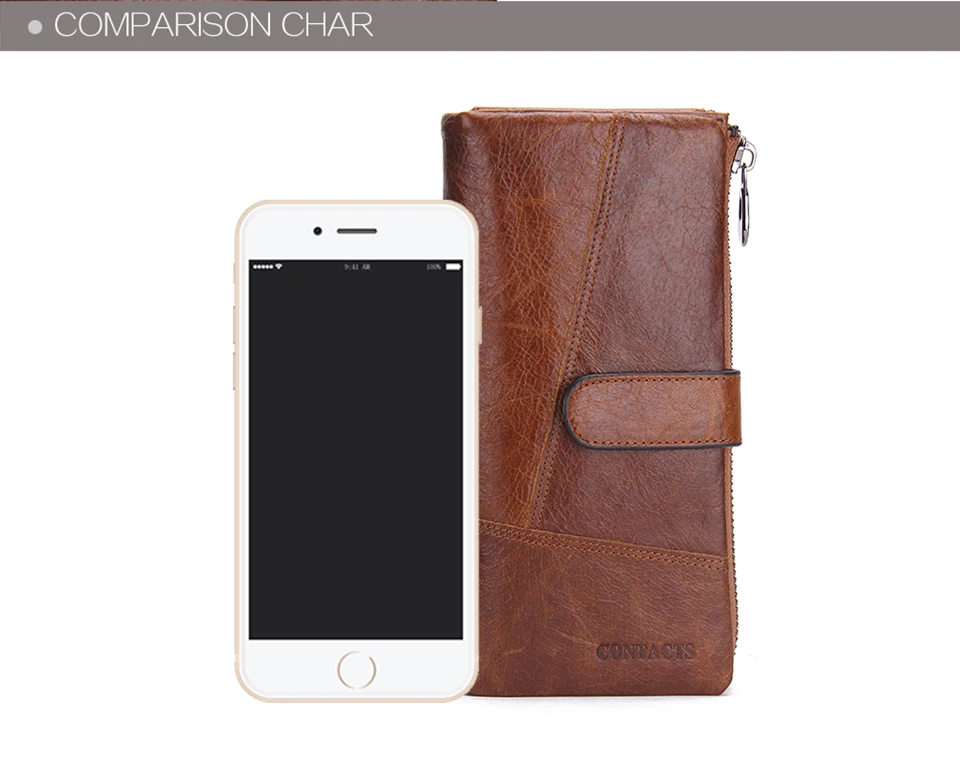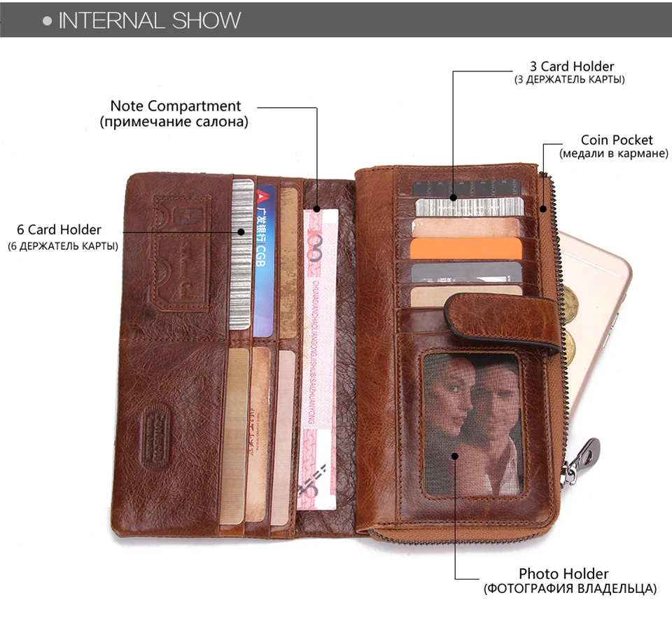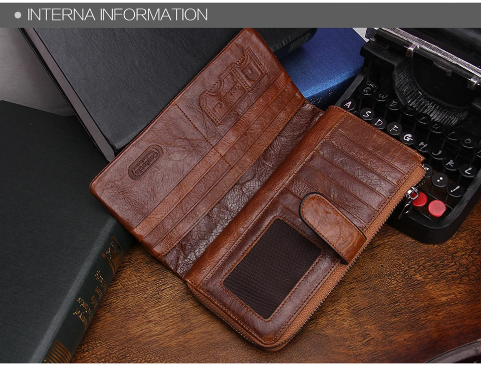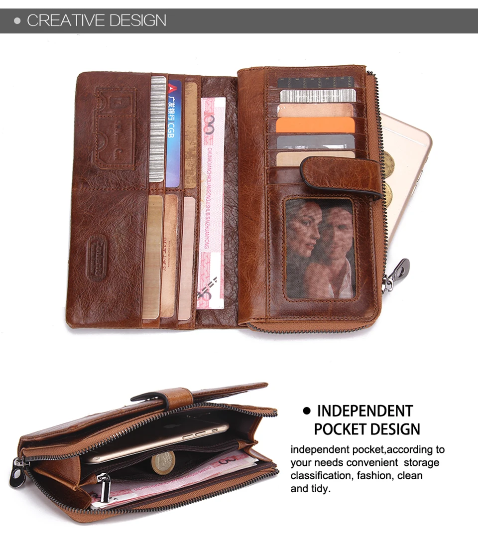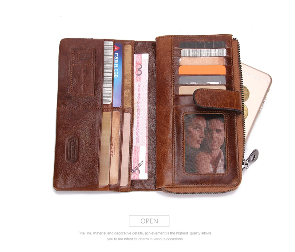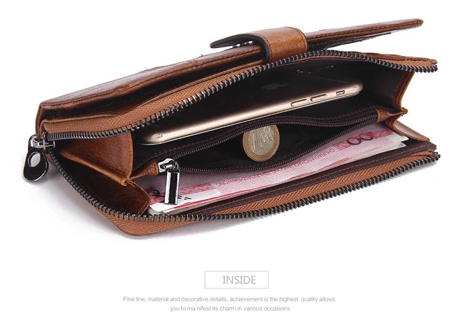 2026 Fashion Genuine Leather Long Zipper Card Holder Wallet Design Mobile Phone Clutch Wallet for Men quantity