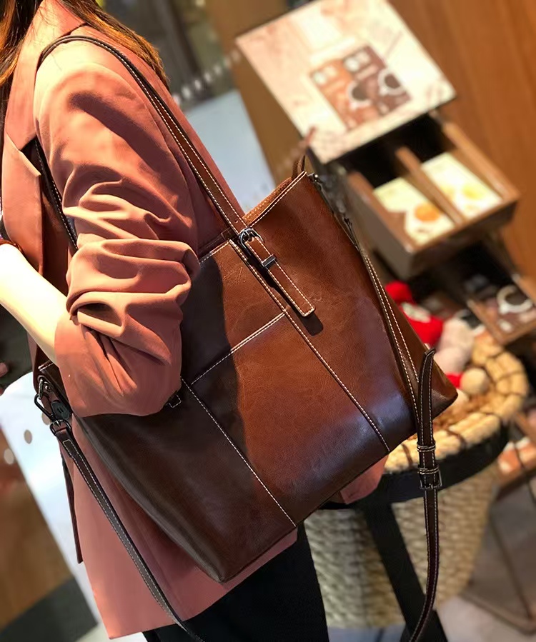 2026 Genuine Leather Women’s Handbag, Retro-Fashionable Large-Capacity Lady’s Tote Bag, Women’s Single-Shoulder Bag