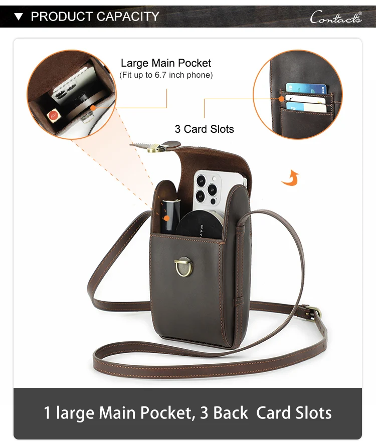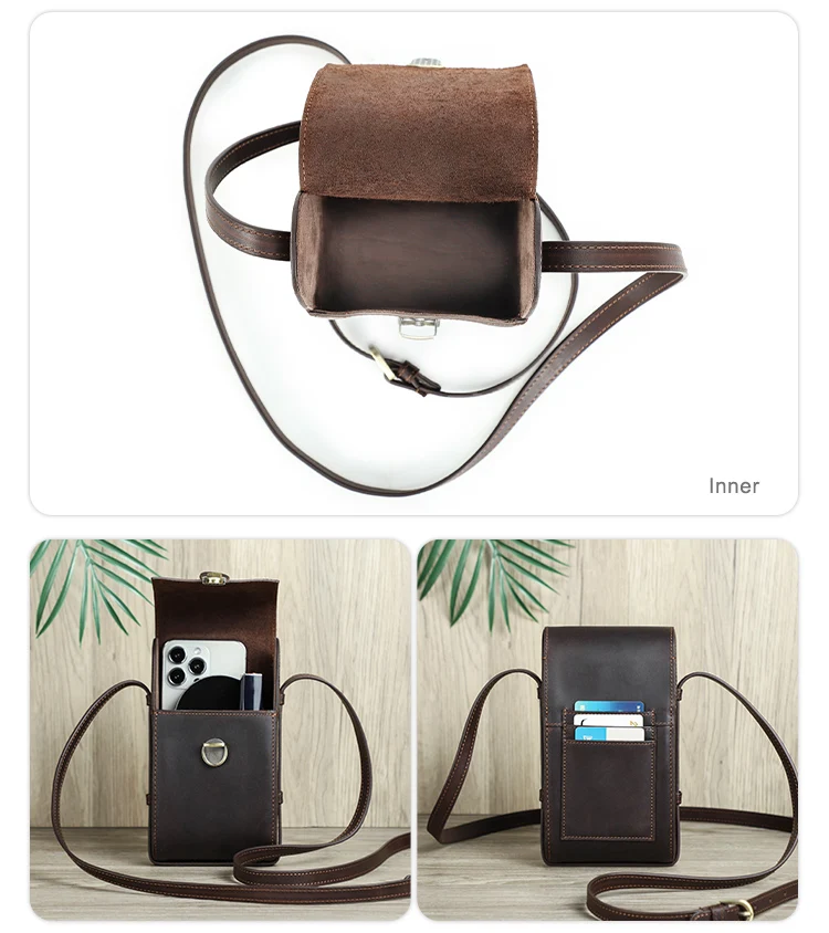 2026 Lady’s Genuine Leather Crossbody Phone Bag, Small Genuine Leather Phone Pouch