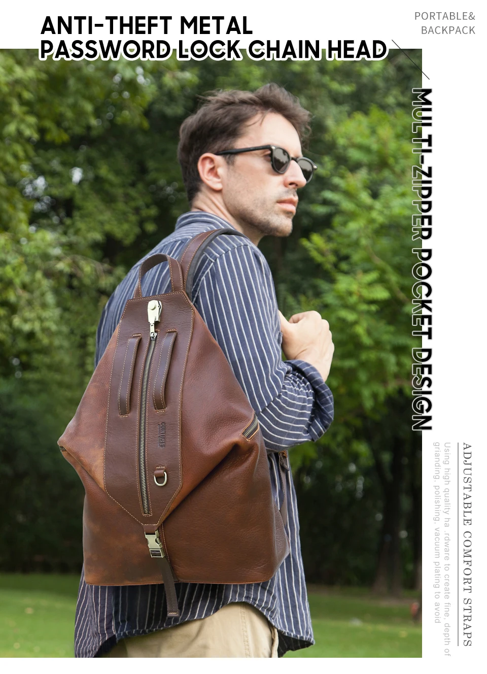 2026 New Genuine Leather Travel Backpack for Motorcycles – Sports Hiking and Mountaineering Dual-Shoulder Backpack