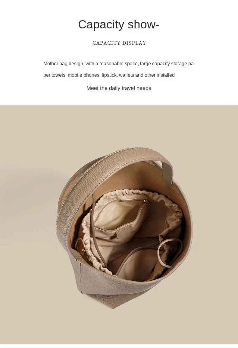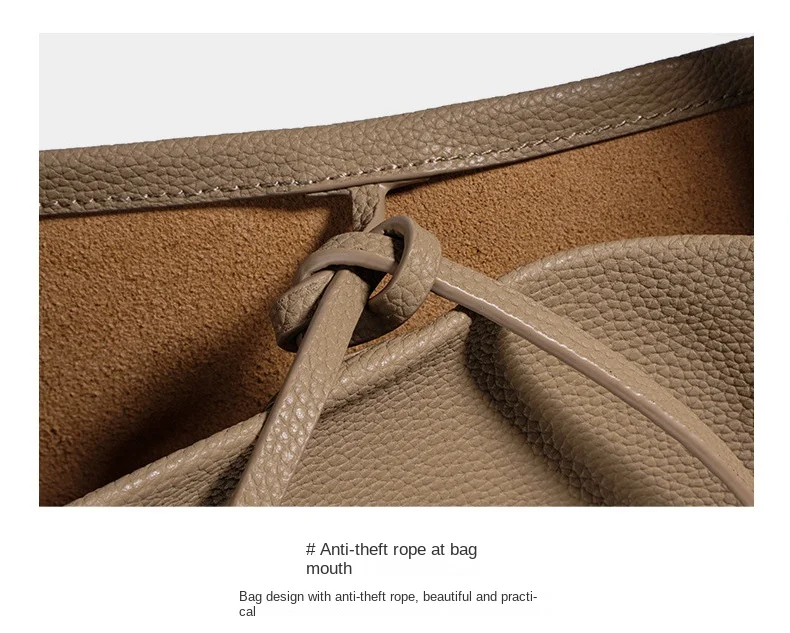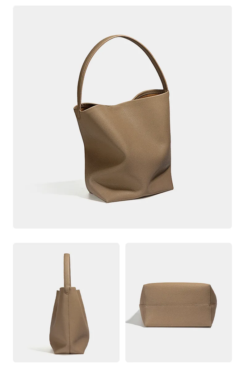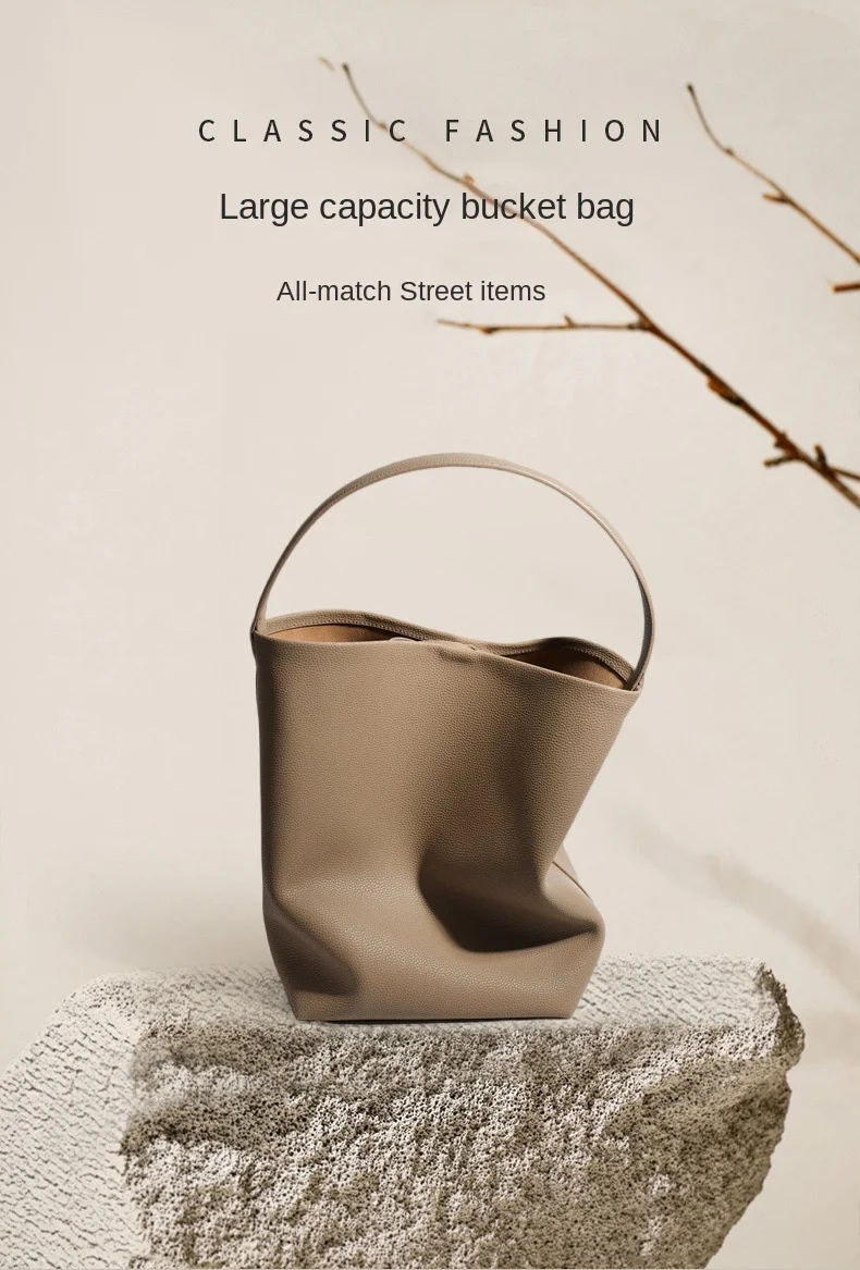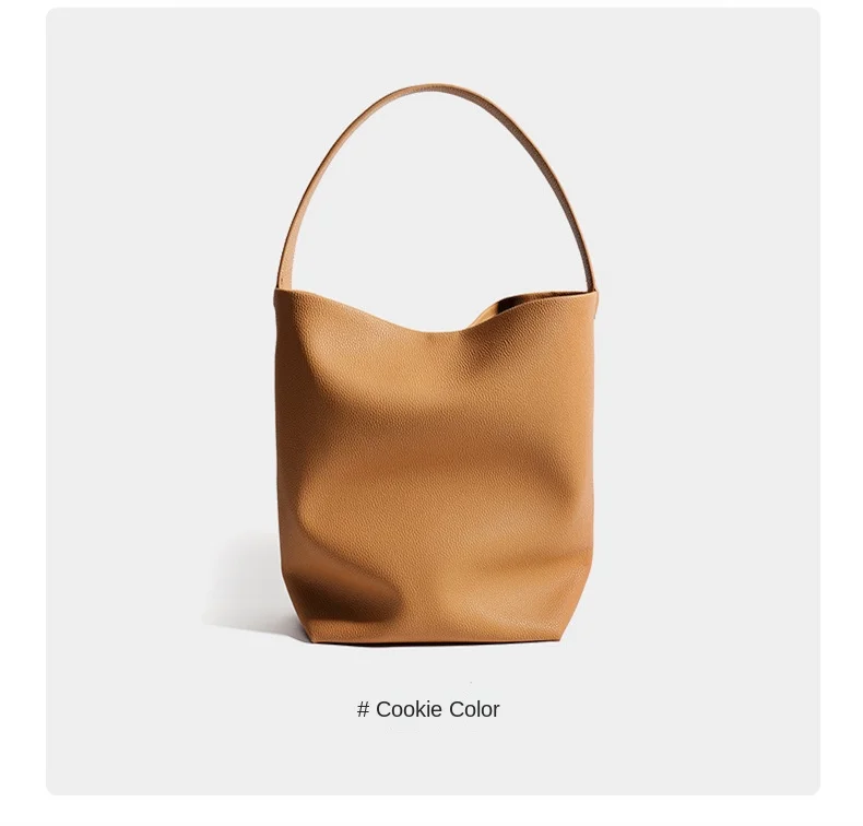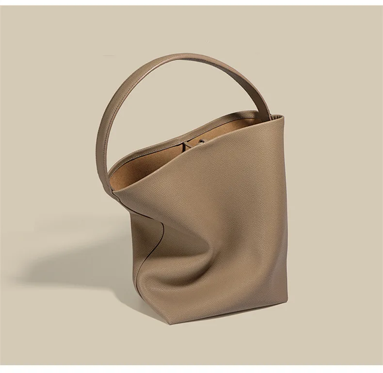 2026 New Style Women’s Large Capacity Soft Cowhide Bucket Bag, Lazy Person Underarm Shoulder Bag, Polyester Material