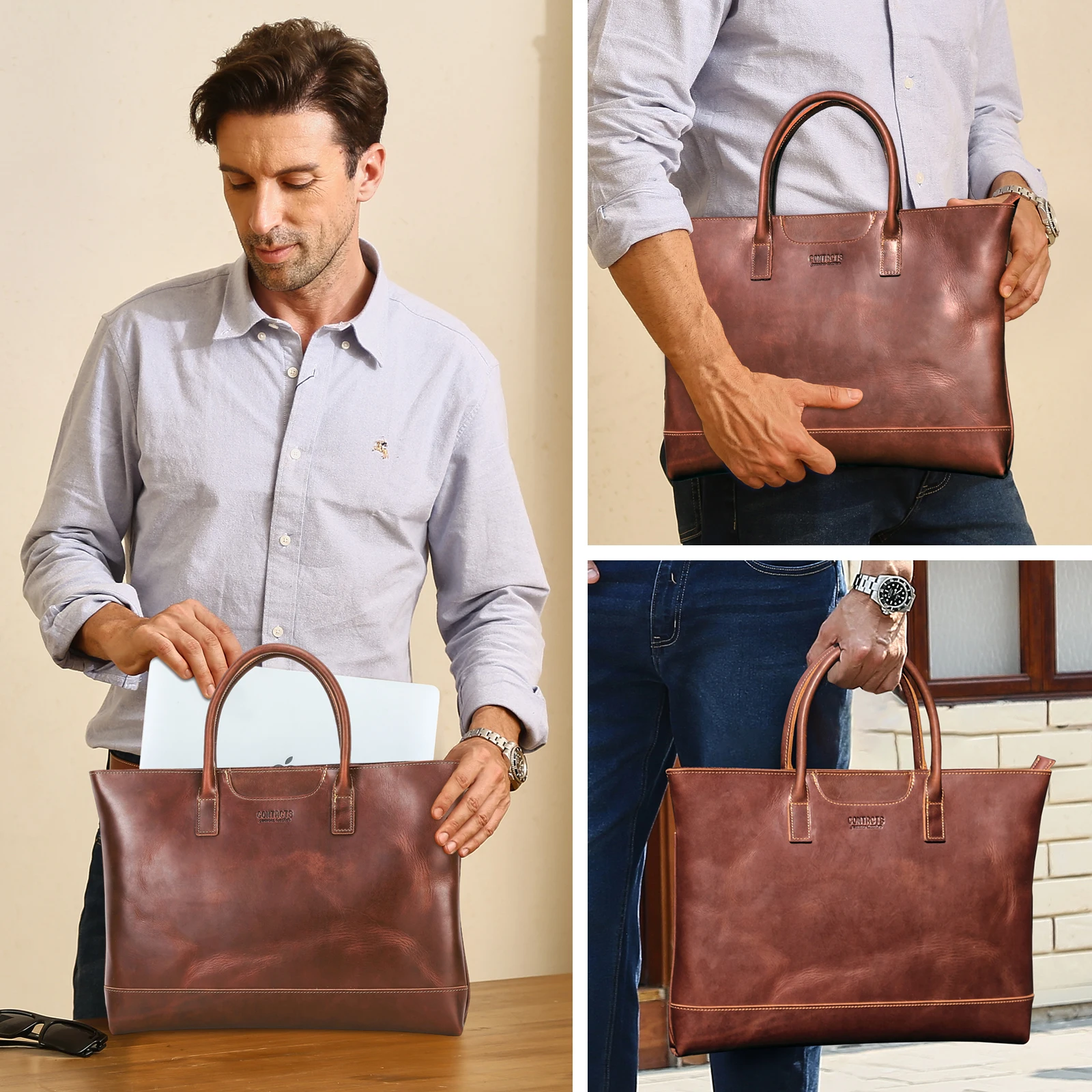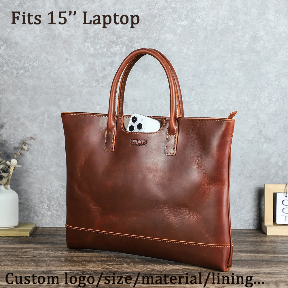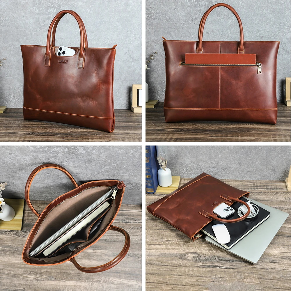 2026 Premium Men’s Retro Leather Notebook Bag with Front Phone Pocket