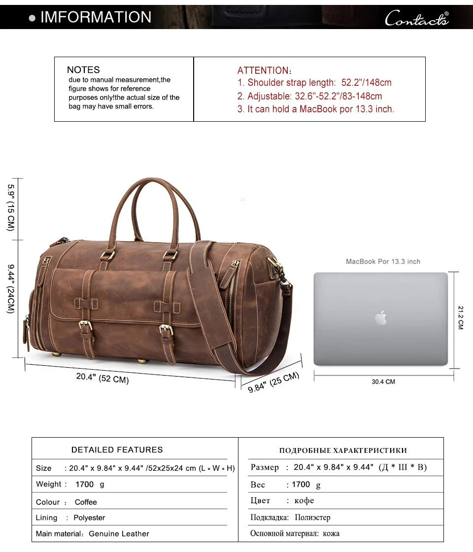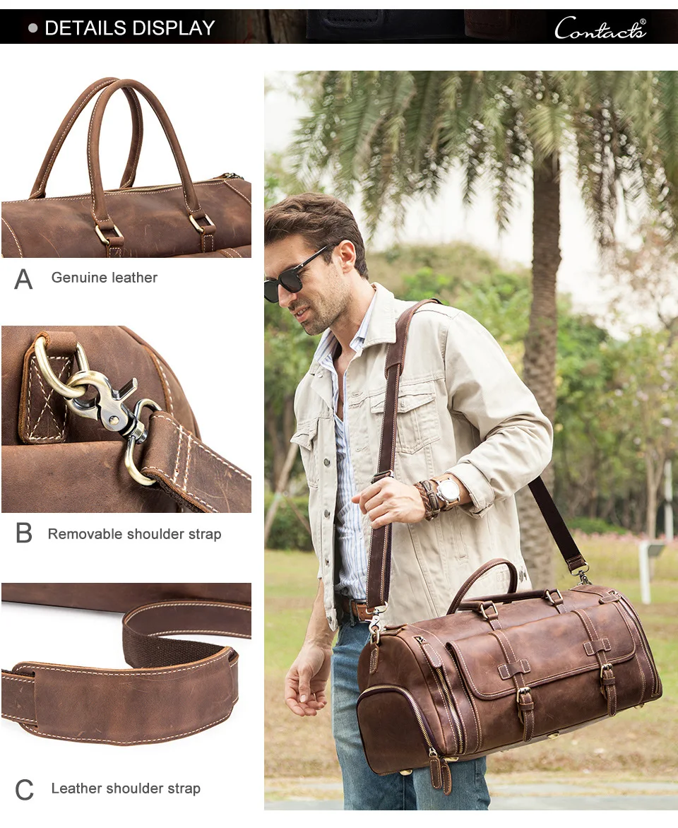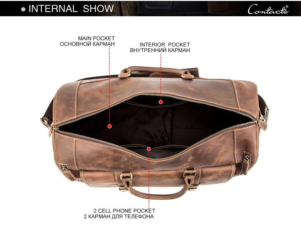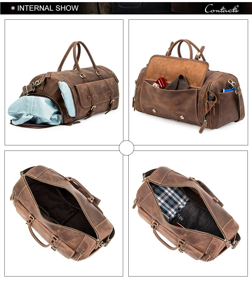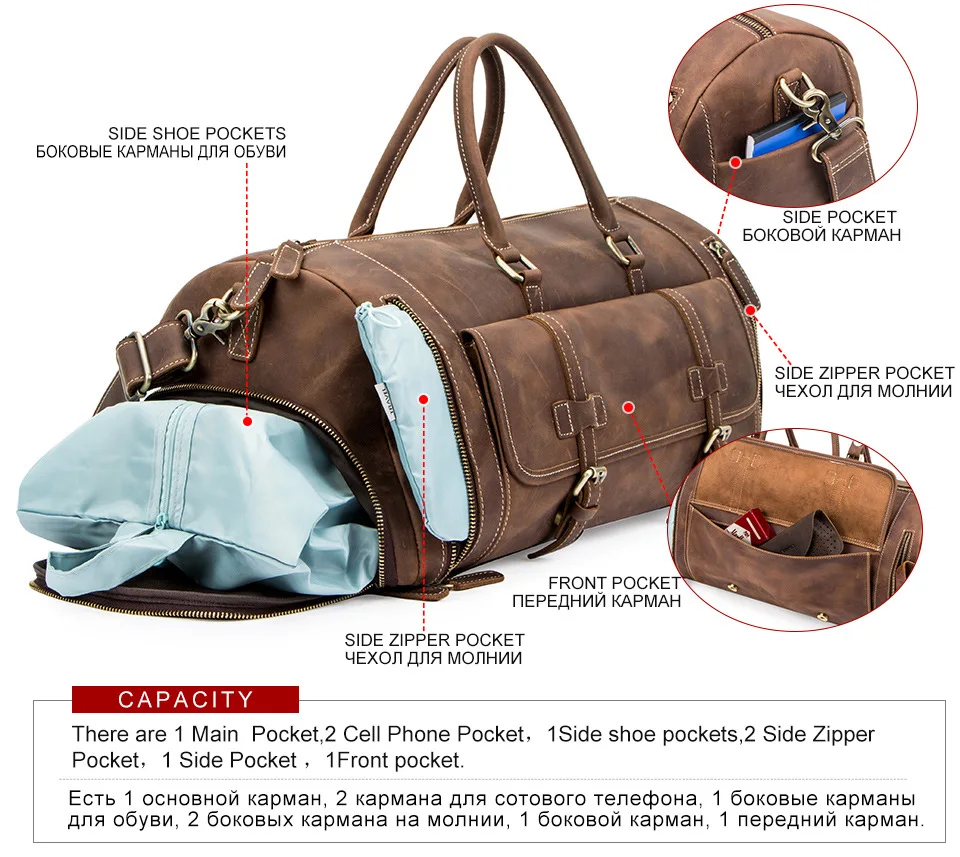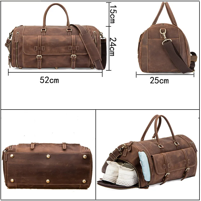 2026 Retro Cowhide Travel Shoulder Crossbody Luggage Bag Large Capacity Genuine Leather Retro Bag Men's Version quantity