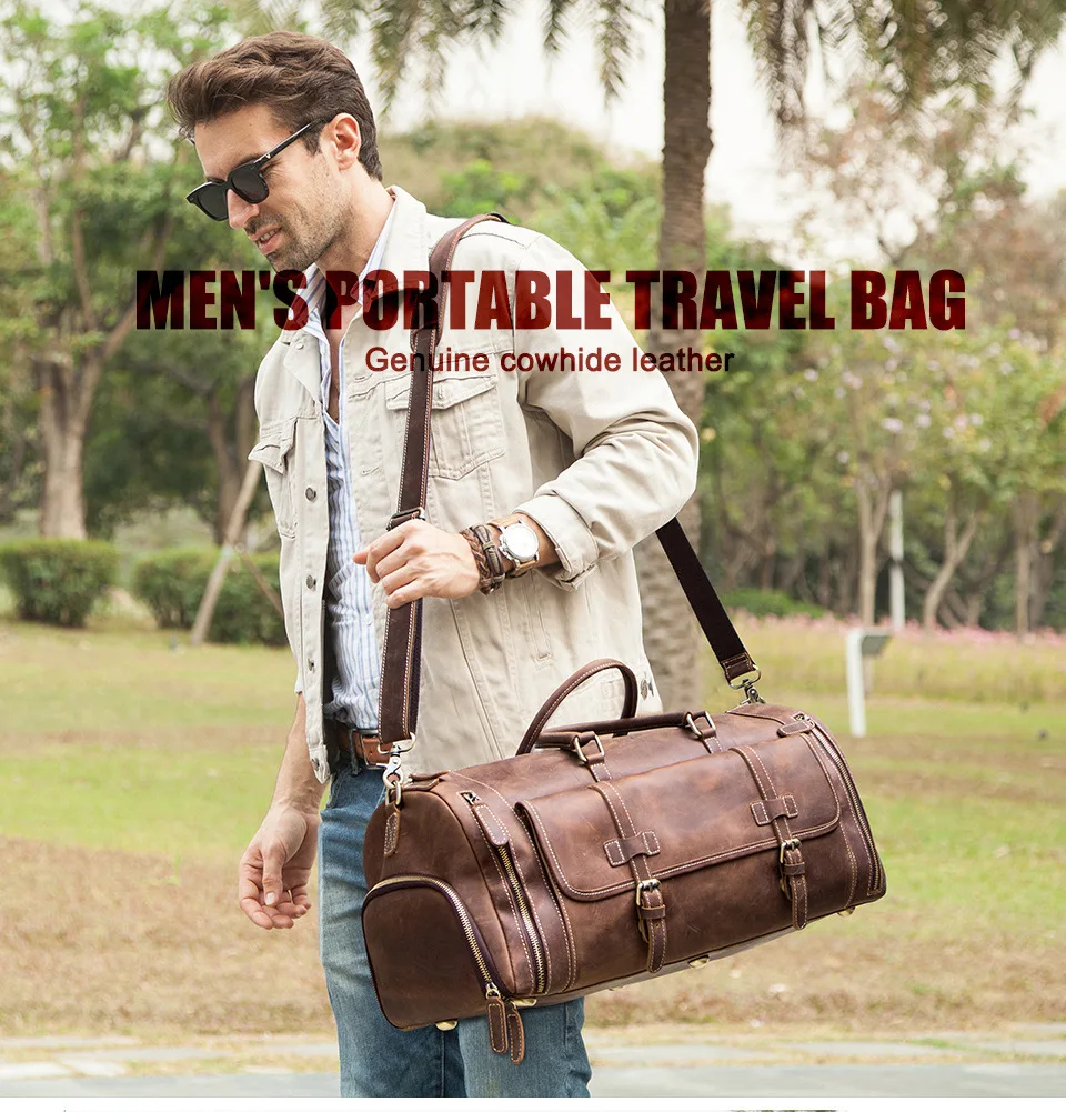 2026 Retro Cowhide Travel Shoulder Crossbody Luggage Bag Large Capacity Genuine Leather Retro Bag Men’s Version