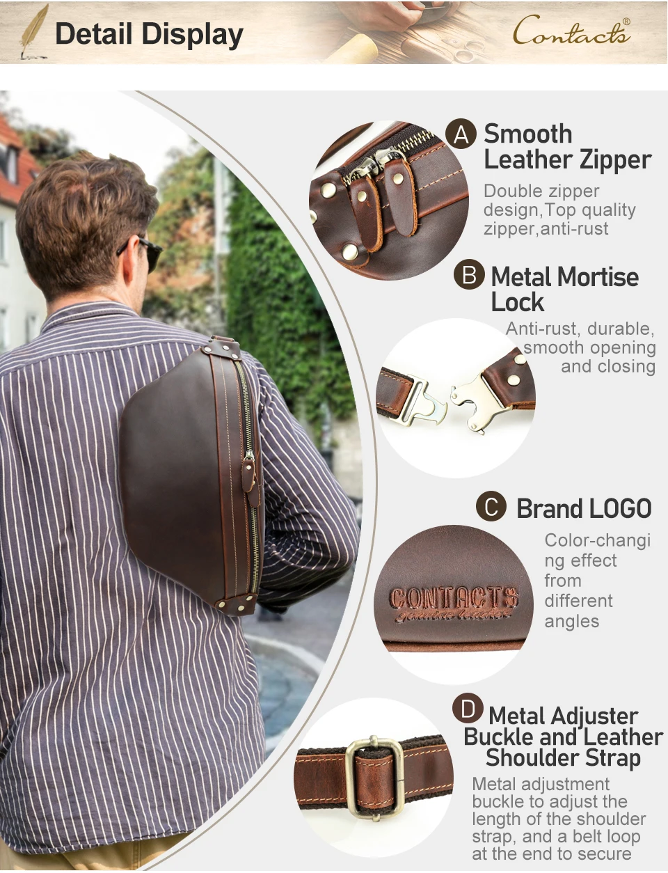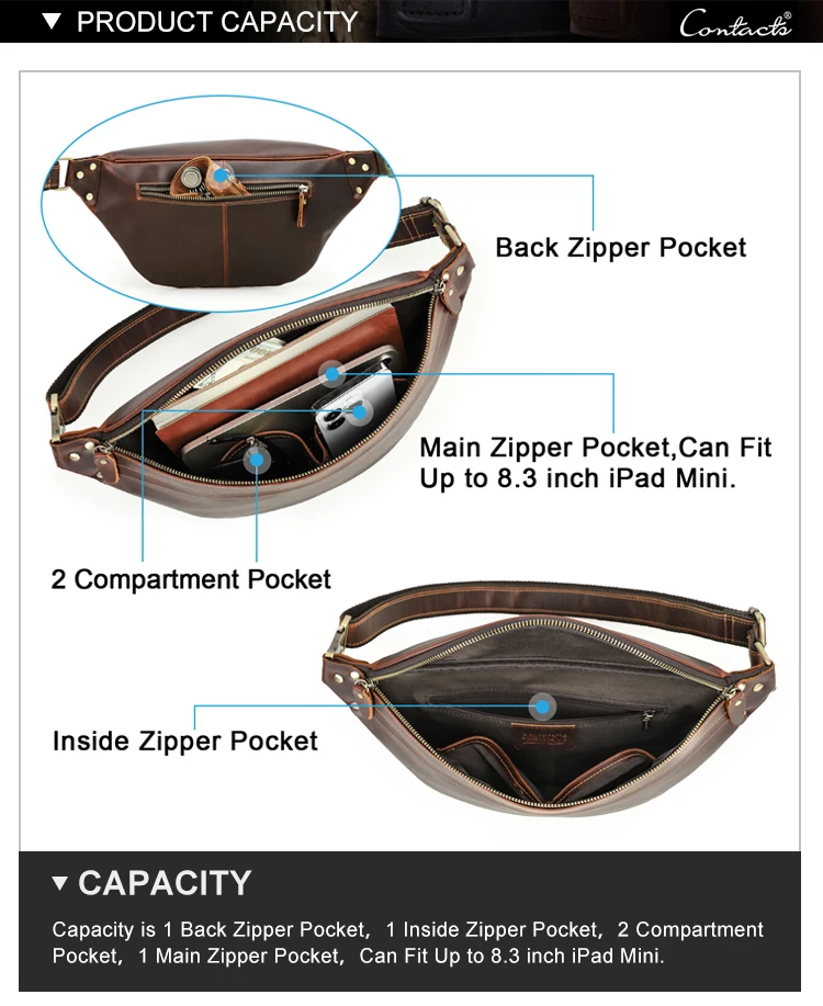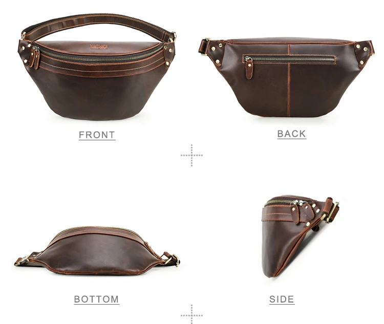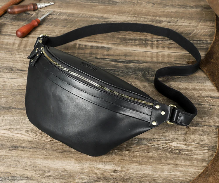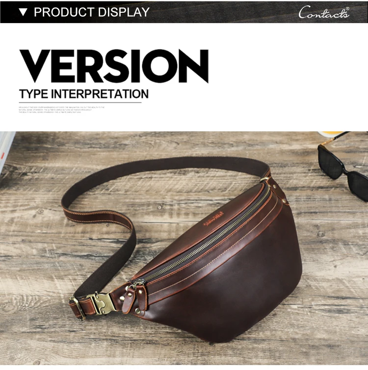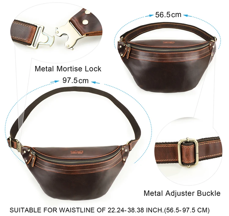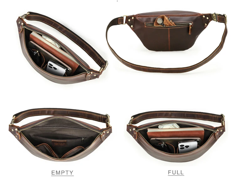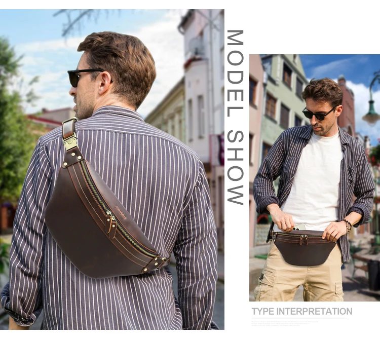 2026 Retro Motorcycle Off-road Leather Dual-color Chest Pack Waist Belt Fanny Pack Men's Luxury Hip Bag Large Capacity quantity