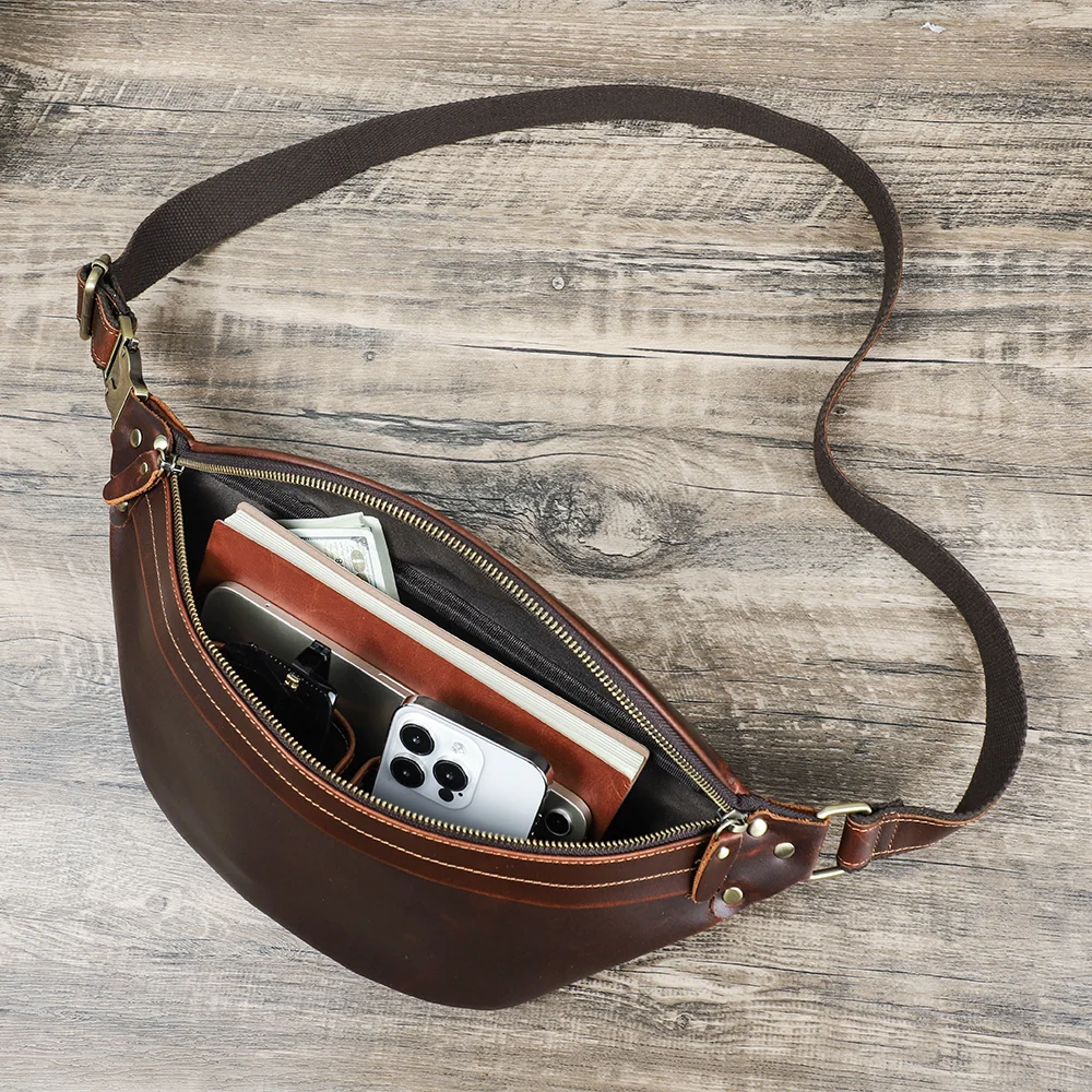 2026 Retro Motorcycle Off-road Leather Dual-color Chest Pack Waist Belt Fanny Pack Men’s Luxury Hip Bag Large Capacity