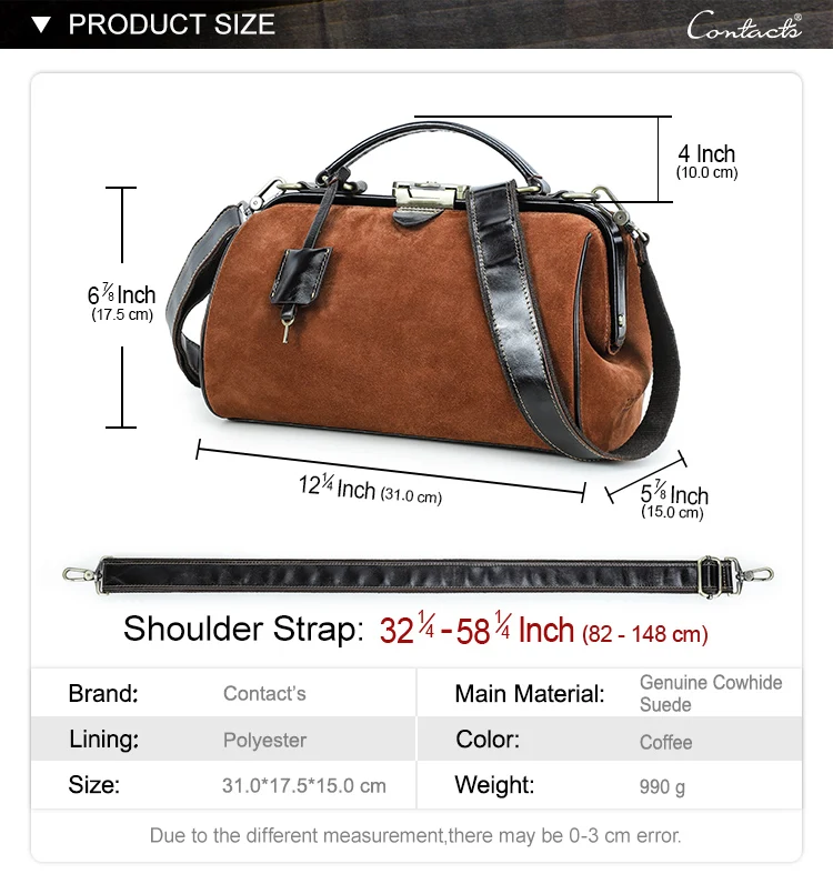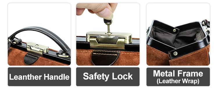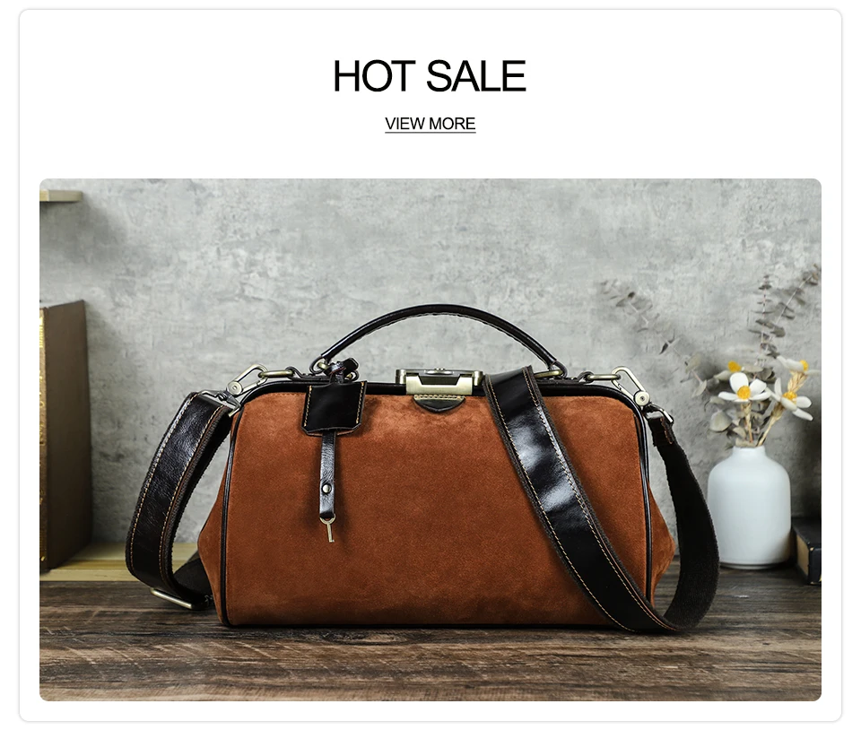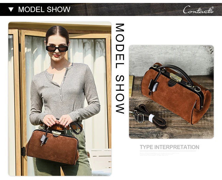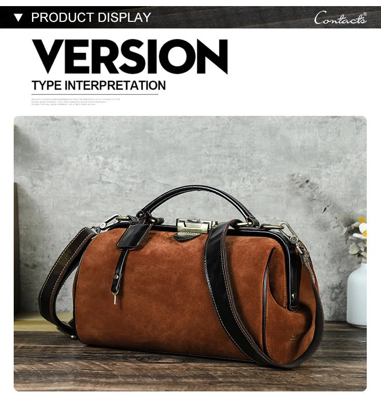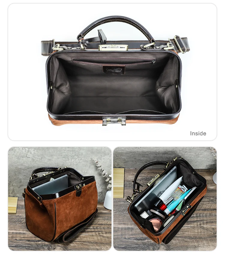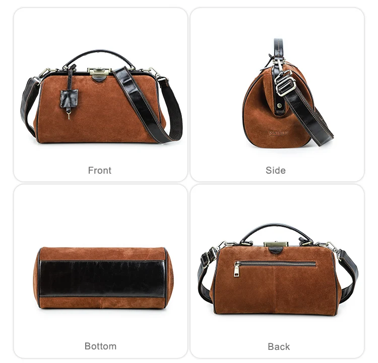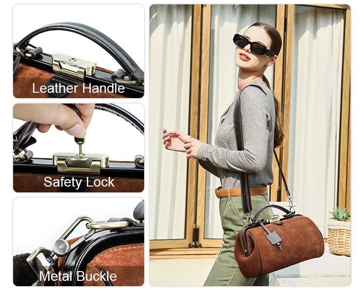 2026 Retro Brown Suede Lady Doctor's Bag Anti-Theft Crossbody Handbag Top Lock Genuine Leather quantity