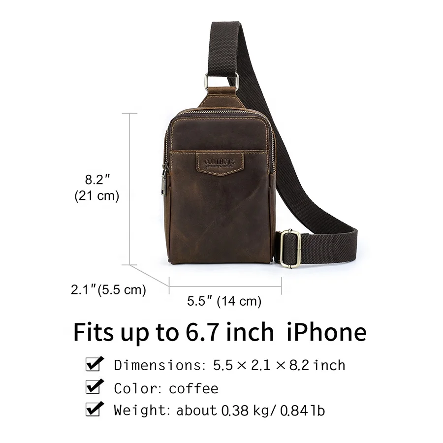 Contact’s Custom Cowhide Genuine Leather Sling Bag Men Small Crossbody Chest Bags for 6.7 Inch Phone Passport Outdoor Daily Life