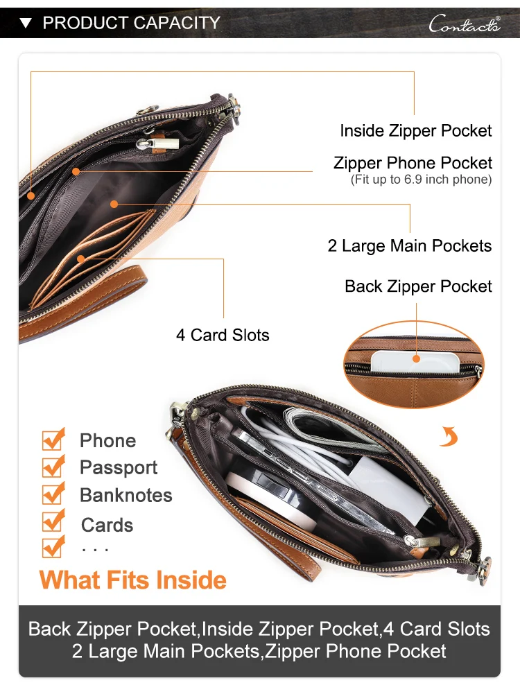 Contact's Genuine Leather RFID Clutch Handbag Purse for Women Convertible Multi-Compartment Wristlet Pouch Small Crossbody Bag quantity