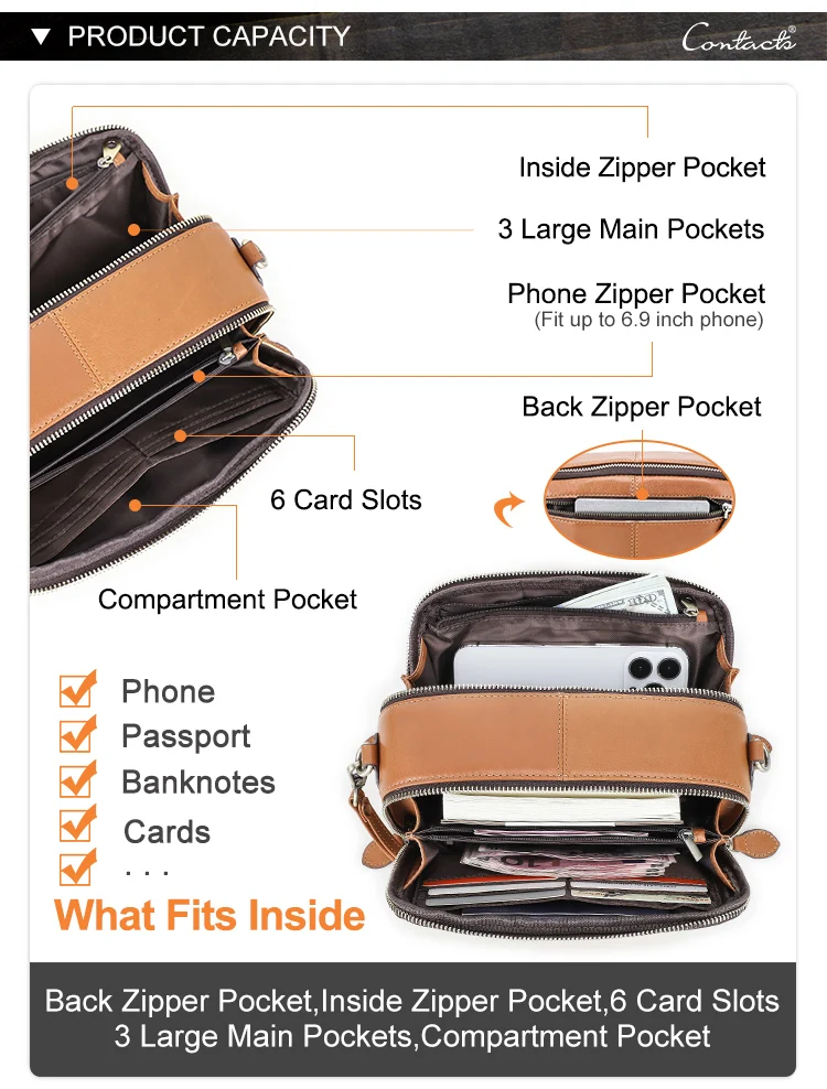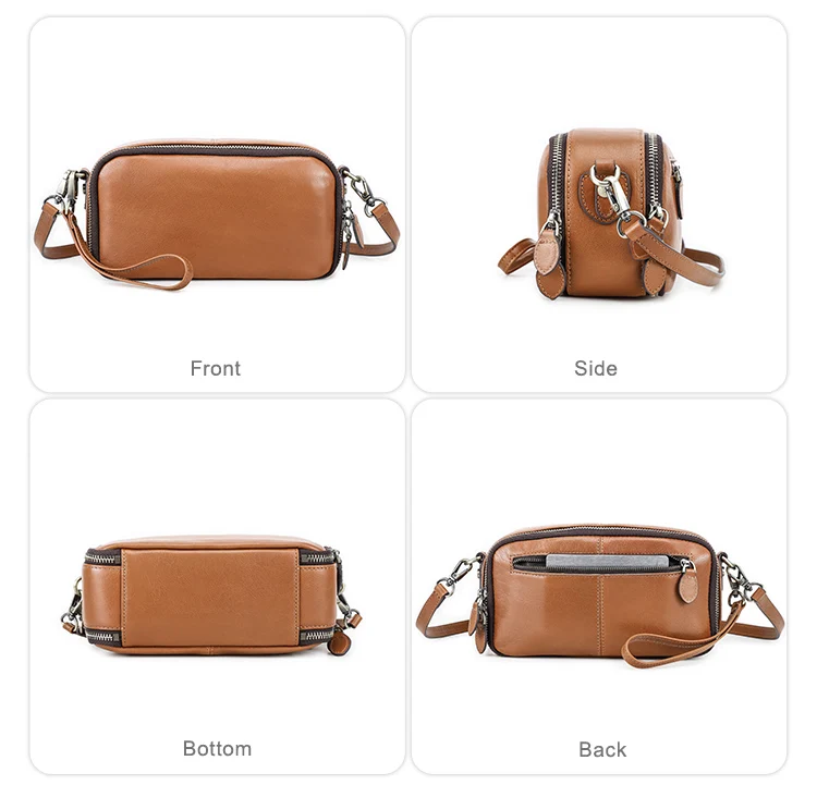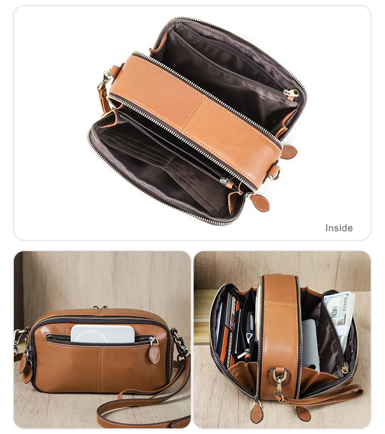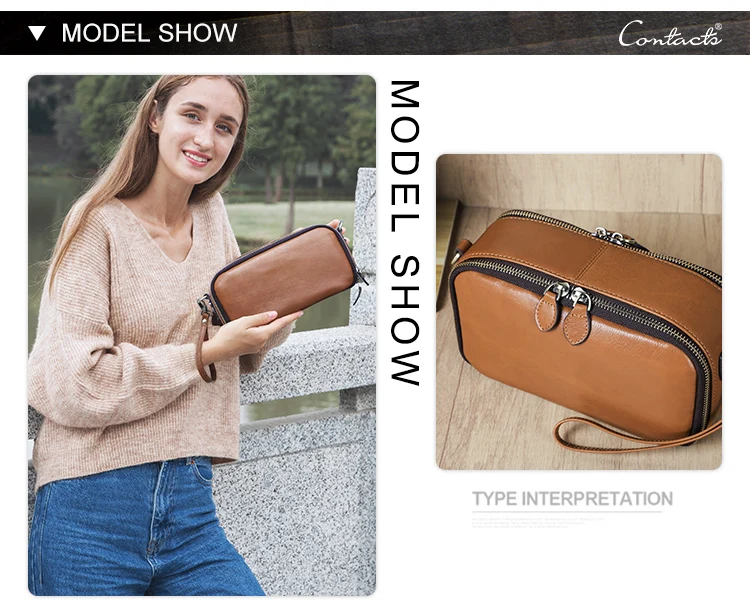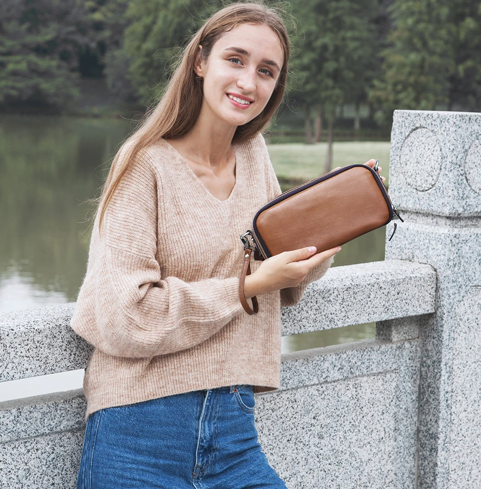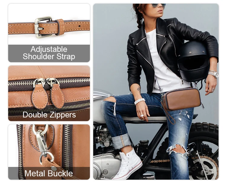 2026 Motorcycle Women's Off-Road Style Dual Zipper Genuine Leather RFID Wristlet Purse, Ladies Wristlet Small Crossbody Bag, Multi-Card Slot Compartment Design quantity