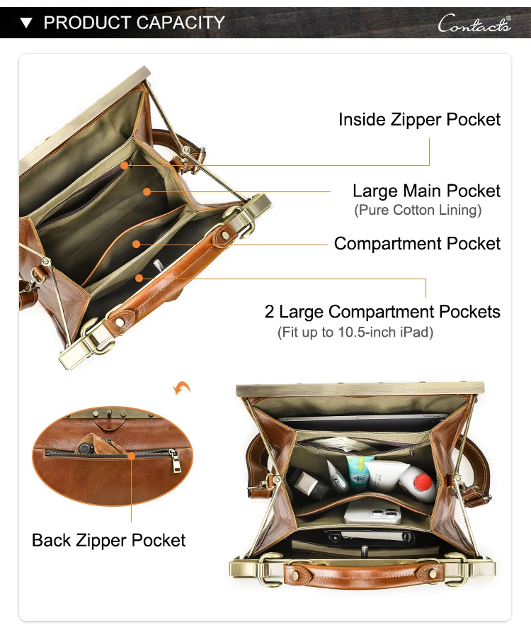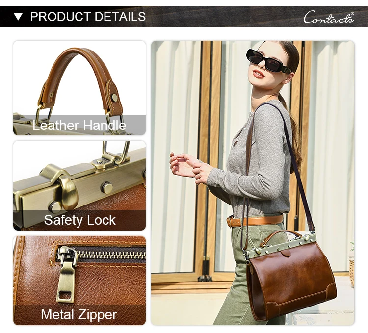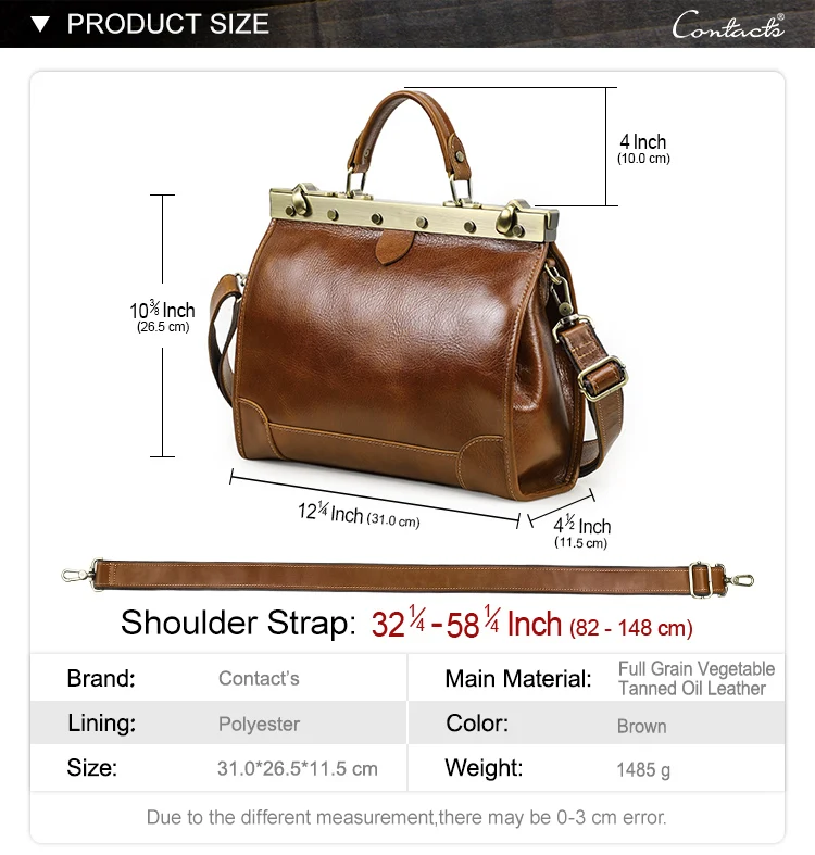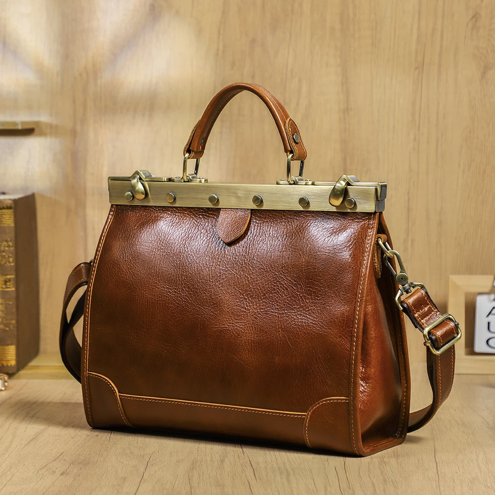 Vegetable Tanned Full Grain Genuine Leather Doctor Work Bag for Women Travel Handbags With Laptop Compartment for 10.5'' Ipad quantity